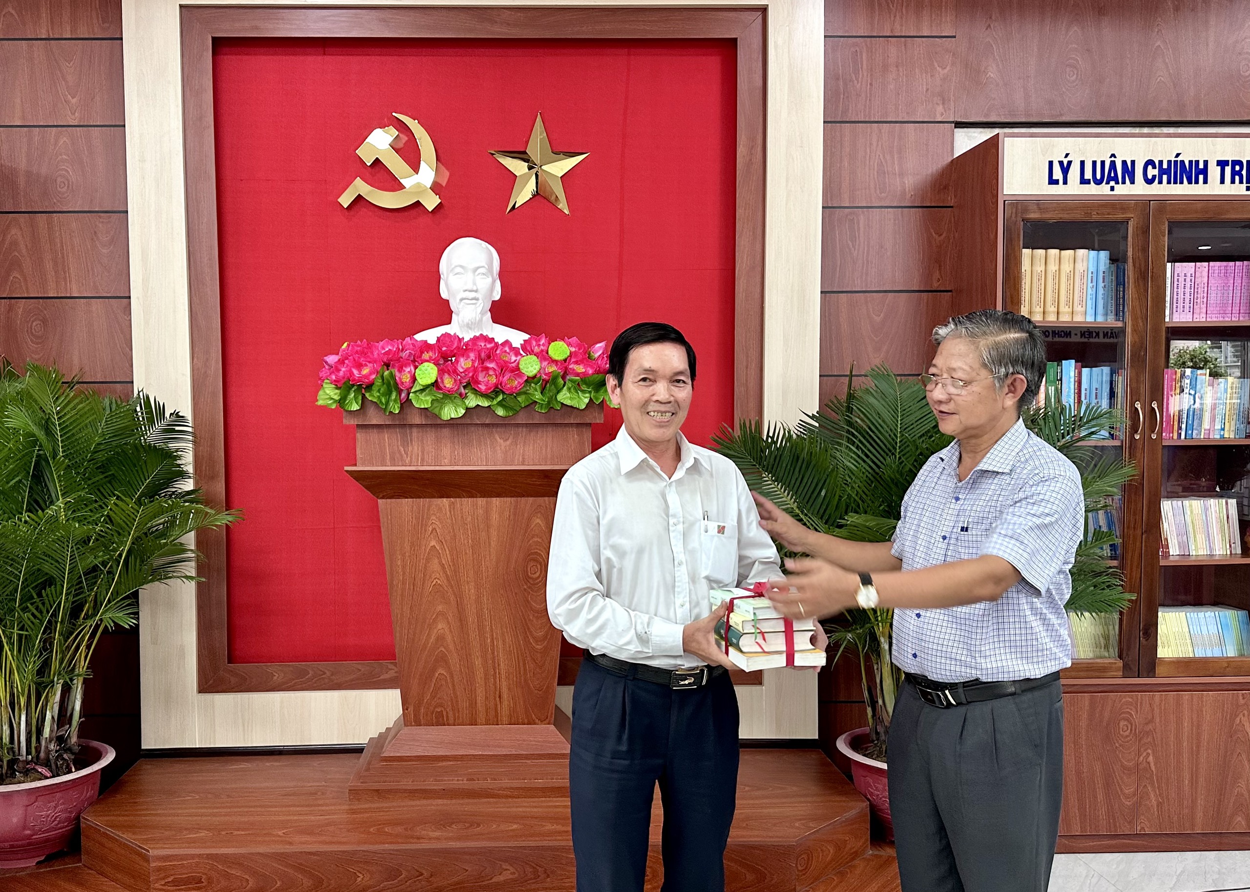 Đồng chí Cao Quang Liêm – Thành ủy viên – Bí thư huyện ủy – Chủ tịch UBND huyện Tri Tôn trao tặng sách thư viện Công trình Thư viện hoàn thành, còn là một trong những tiêu chí góp phần xây dựng TTCT đạt chuẩn theo Kết luận số 66-KL/TW ngày 08/11/2019 của Ban bí thư Trung ương Đảng khóa XII.